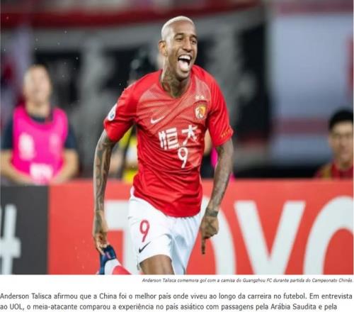 近日,前中超著名球星、曾效力广州恒大的巴西外援塔利斯卡,接受了巴西媒体UOL的专访。塔利斯卡直言,他非常怀念在中国踢球的时光,因为中国是他居住过的最棒的国家,便利的生活条件给他留下了深刻的印象。